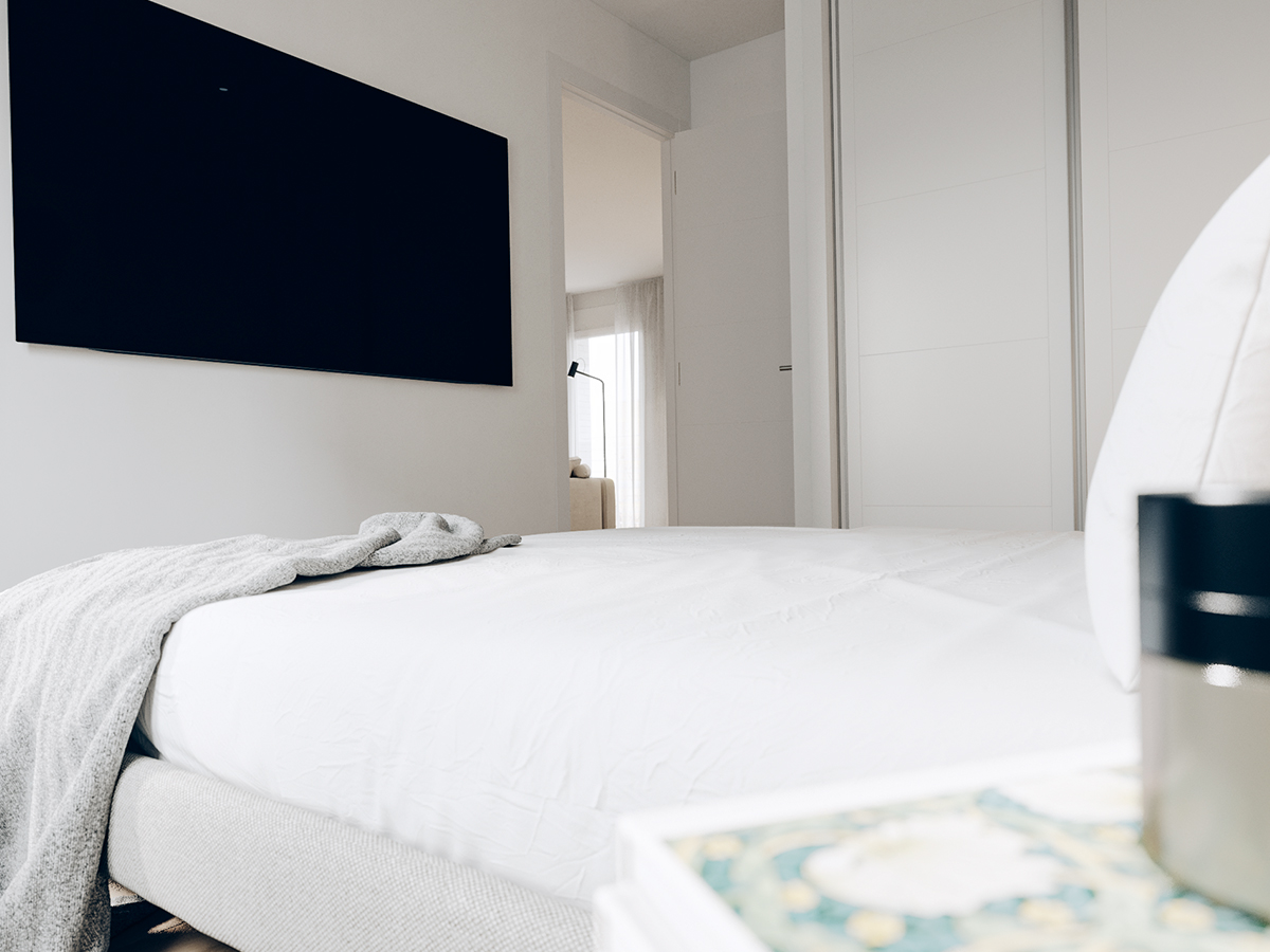 Amplias habitaciones con armarios empotrados vestidos con barra y cajoneras y ventiladores ultrasilenciosos de verano e invierno.